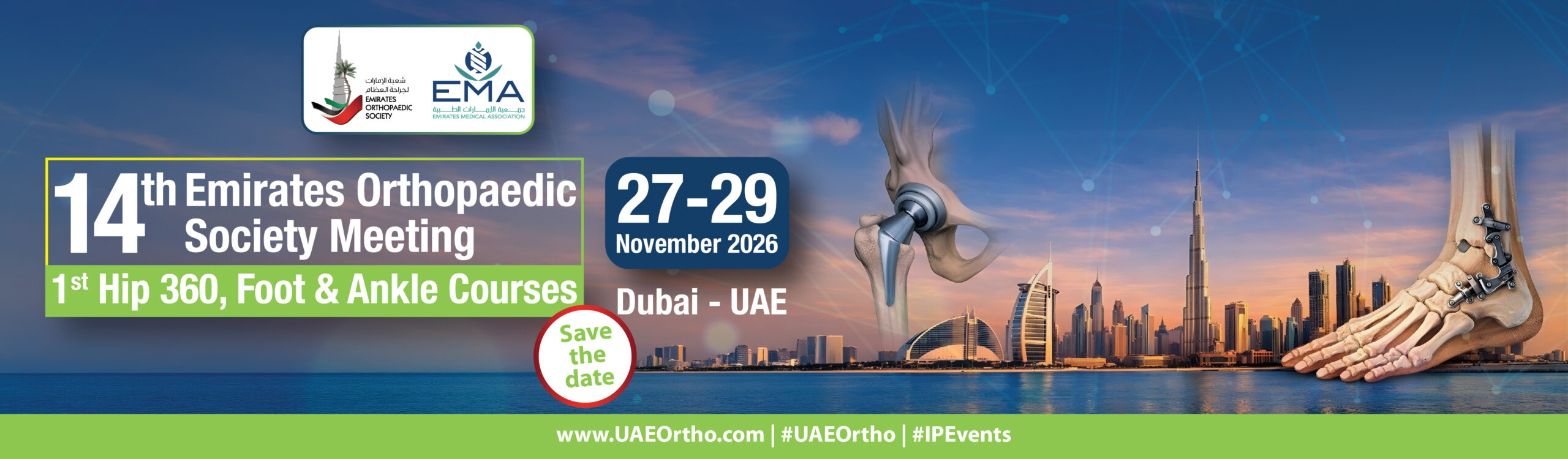On behalf of the Emirates Orthopaedic Society, it is our great pleasure and honor to welcome you to the 14 th Emirates Orthopaedic Society Meeting, taking place from 27–29 November 2026 in Dubai, United Arab Emirates.