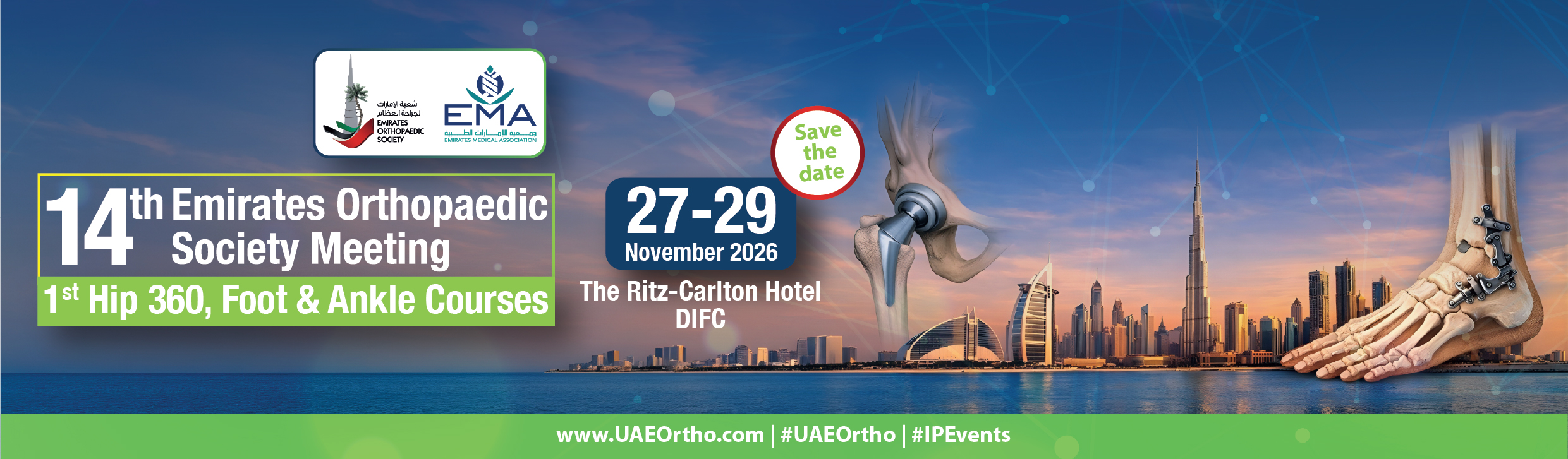 On behalf of the Emirates Orthopaedic Society, it is our great pleasure and honor to welcome you to the 14th Emirates Orthopaedic Society Meeting – 1st Hip 360 & Foot & Ankle Courses, taking place from 27–29 November 2026 at The Ritz-Carlton Hotel, DIFC, Dubai, United Arab Emirates.