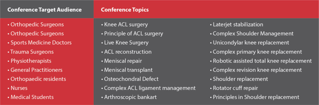 Sponsorship of the Complex Joint Injuries Management provides an excellent opportunity for companies operating within this exciting field to explore the market and interact to build lasting relationships with current and prospective clients at all levels and segments – corporate and government departments.